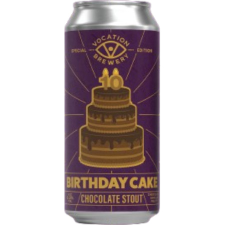 Celebrate 10 years of Vocation Brewery with our Birthday Cake Stout. It's rich and velvety with a classic chocolate base, layered with flavours of warm vanilla, sticky-sweet caramel, vibrant blueberries and a touch of cherry to top it off.