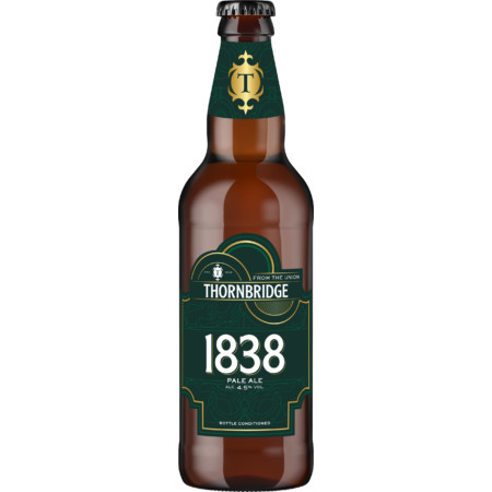 Named after the year the Burton Union system was patented by Peter Walker, 1838 is brewed exclusively on the set at Thornbridge. 1838 combines the best British malt, Maris Otter, with the finest Goldings hops for a full-bodied, premium pale ale with a light amber hue. This beer
