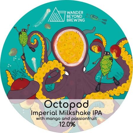 Octopod is a hyper-viscous Imperial Milkshake IPA with a good helping of lactose and vanilla. Re-fermented on over half a tonne (more than 300g/l) of alphonso mangoes and passionfruit. Generously dry hopped post-fermentation with both Citra and Mosaic T90 hops.